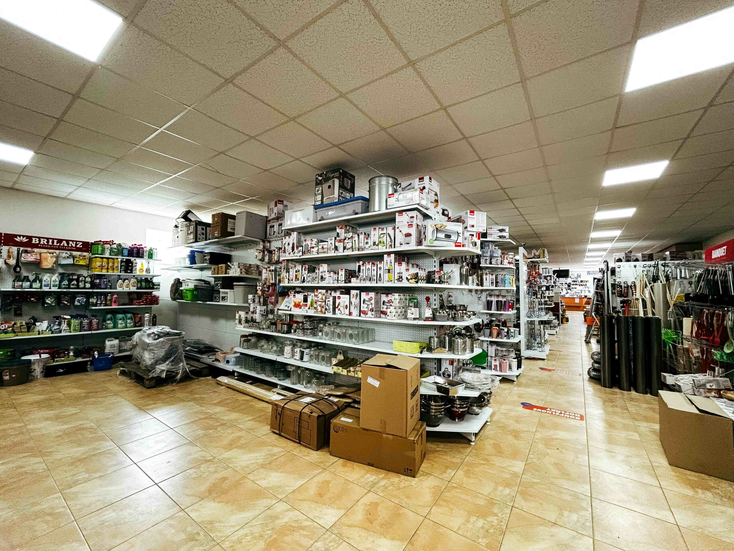 Nádobí, úklidové pomůcky, drobné spotřebiče, plastové a kovové výrobky.